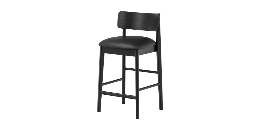 Bringing together the organic texture of natural timber, a sleek curved backrest, a black PU upholstered seat and eye-catching black finish, to create a barstool that ticks all the boxes!