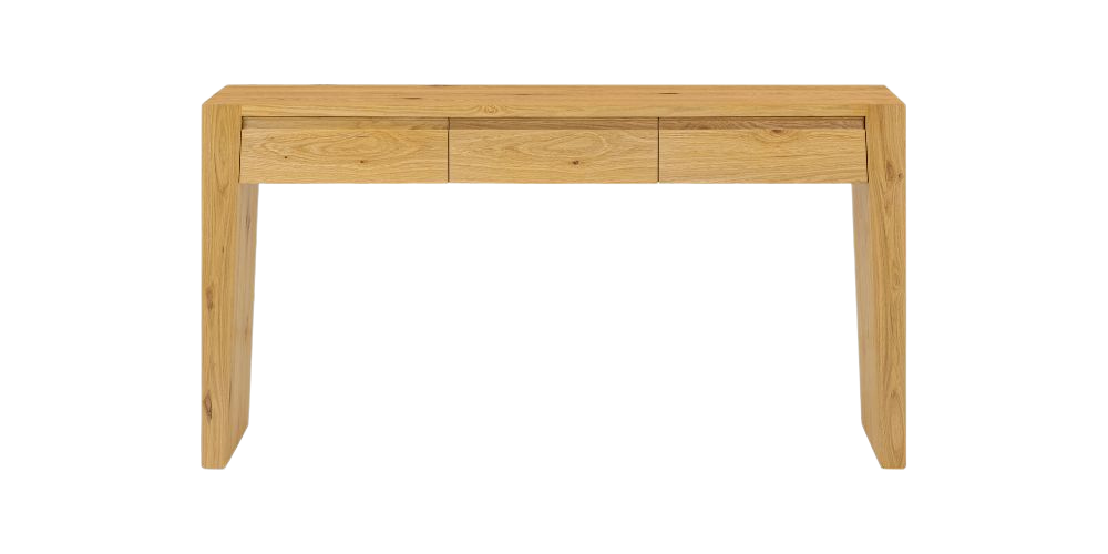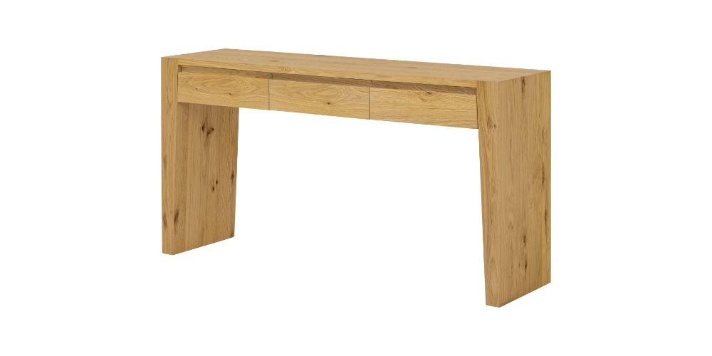 The Boston Console Table exudes an organic, timeless allure with its oversized scale and proportion, commanding attention as a striking focal point in any space. Showcasing an organic, knotty timber grain with natural splits, accentuated by a gentle wire brushed finish that adds tactility and uniqueness to each piece. Featuring a distinctive tapered leg that softly balances the overall visual weight, a chamfered table edge and integrated drawers pulls with soft close, our Boston Console Table offers both aesthetic appeal and practical convenience.