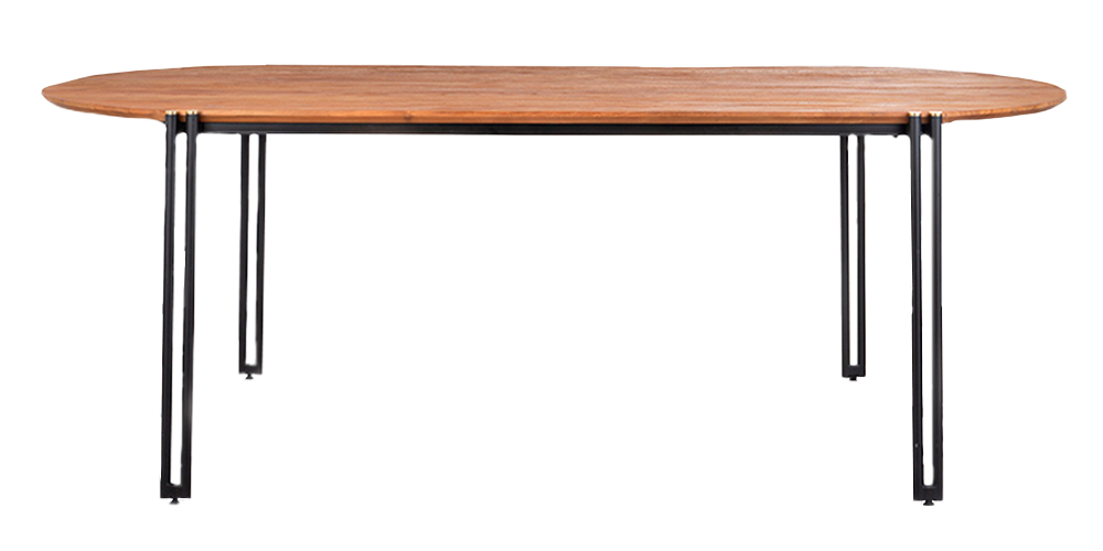 Refined and elegant, our Coco Dining Table brings mid-century charm to your home. The oval tabletop is made from solid, high-quality reclaimed teak wood, and is paired with slender iron legs to give it a subtle, light, yet modern look.