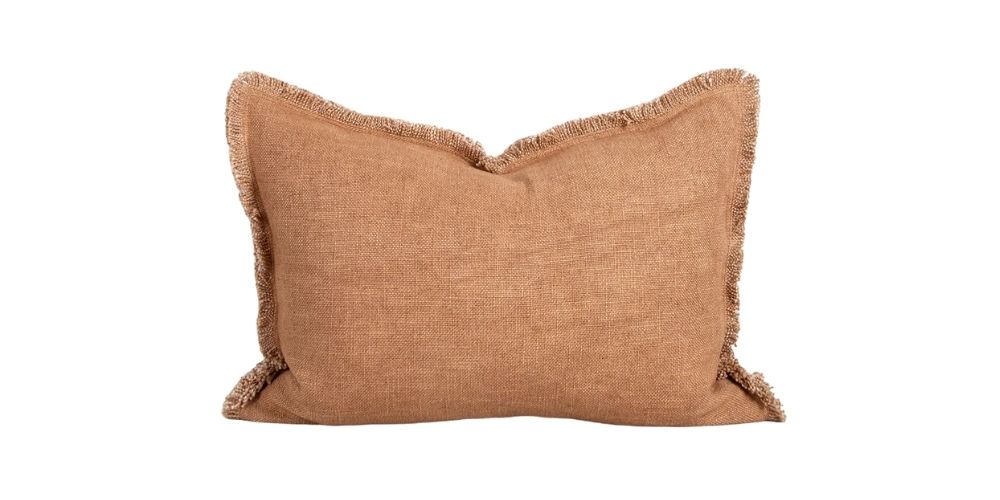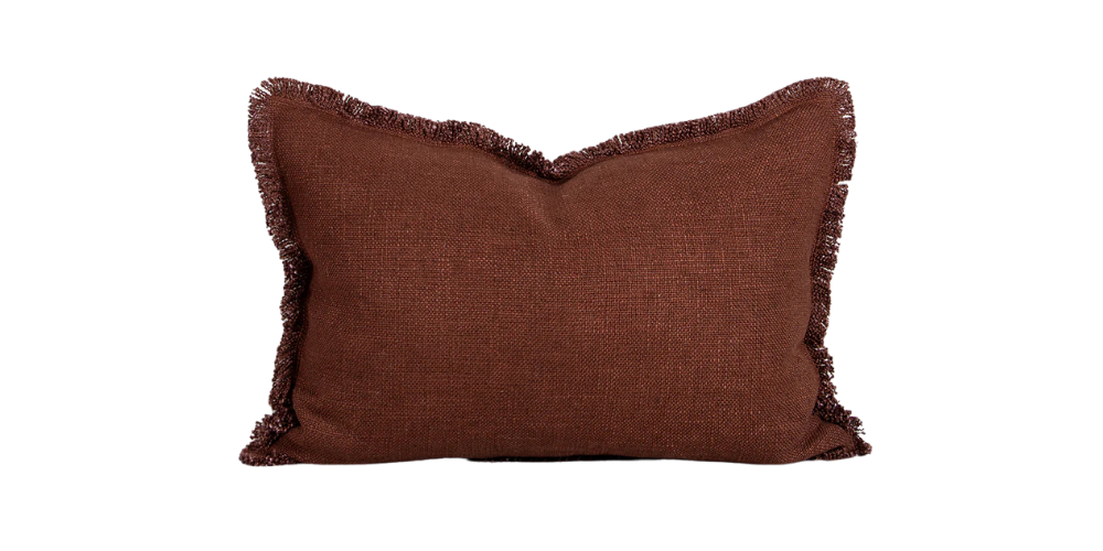 Introduce soft pink clay hues into your home with the understated elegance of our Dover lumbar cushion. Made from thick yarn strands, its simple weave and fringed edges bring a cozy texture and subtle colour to your decor.