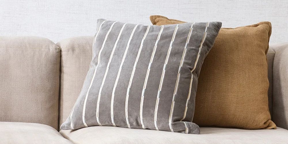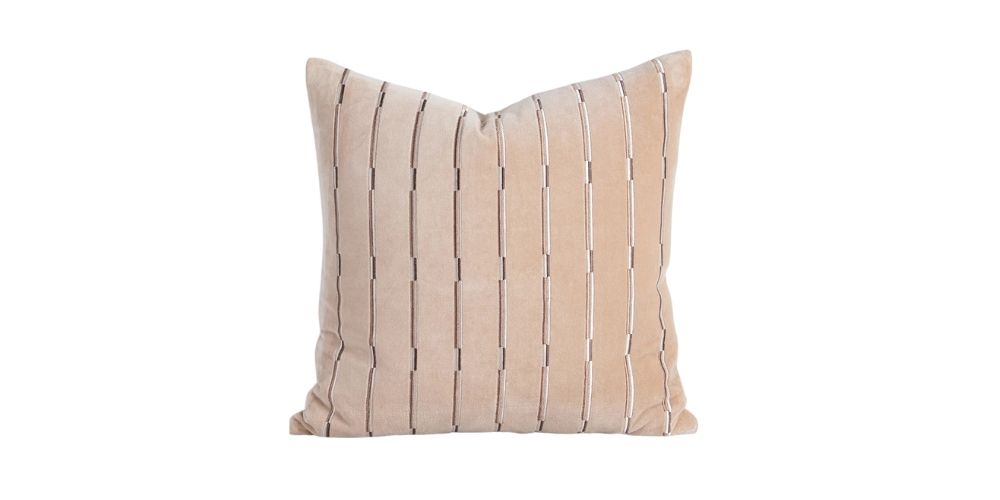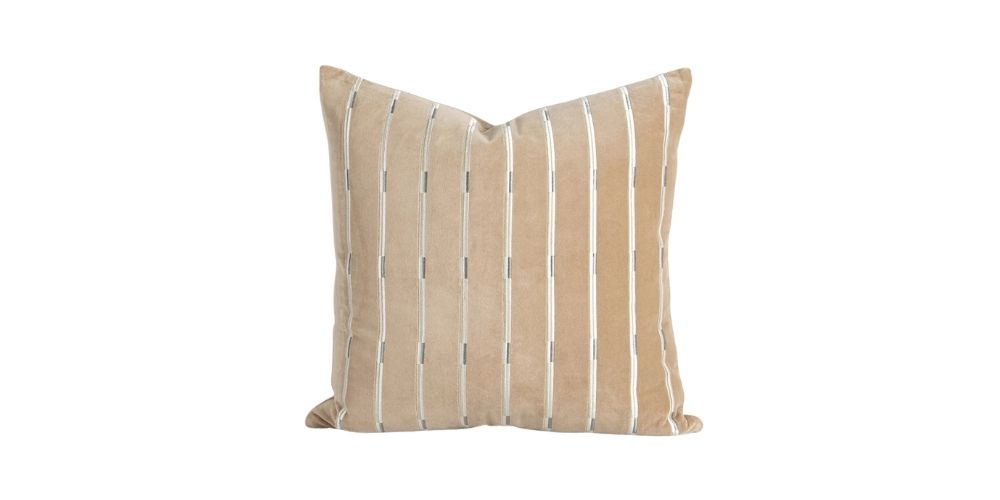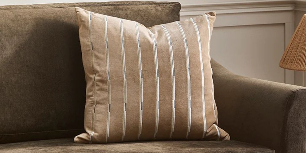 Indulge in modern luxury with Eden, a soft cotton velvet embroidered with a refined off-set linear pattern. Its rich matte finish adds subtle, sensory richness, while the dusky barley colour offers a warm, elegant appeal. Complement with Theo-Trout, Cyprian-Rosemary, and Dover-Sage cushions to achieve a harmonious and stylish ensemble.