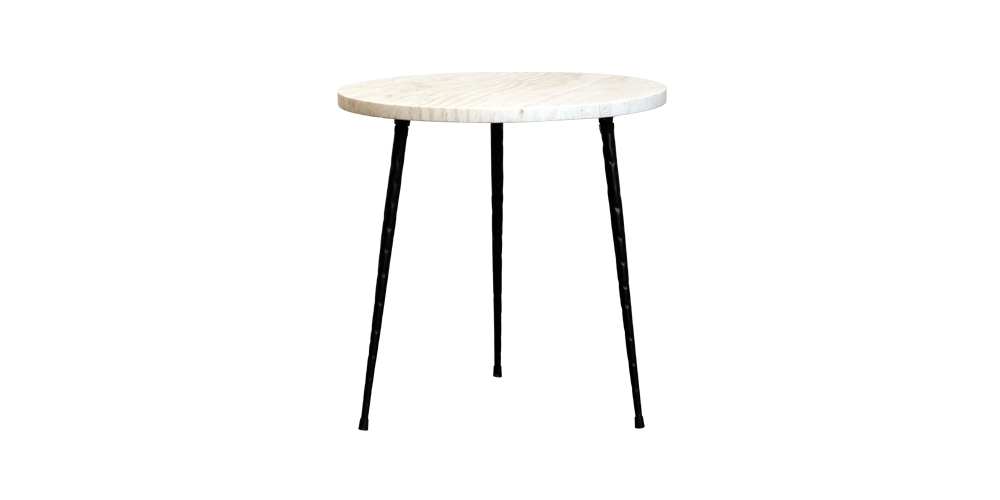 • Material composition: Top – Natural white marble. Frame – Hammered iron leg in industrial matte black powder coating
