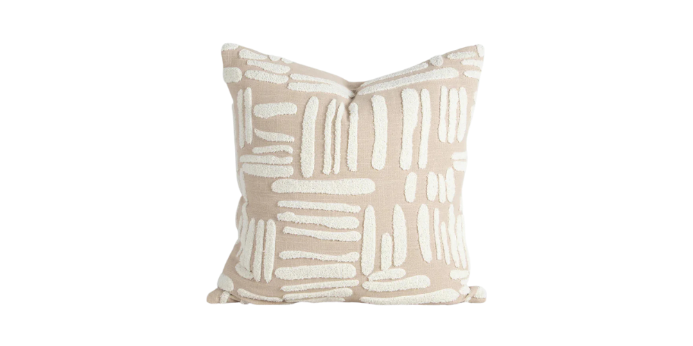 Gobi is a stunning textured piece featuring densely tufted embroidery crafted from 100% cotton. Rendered in a neutral colour palette, its subtly tribal surface design introduces an inviting, tactile element to any interior. Pair with finely woven linens in shades of neutral, cocoa, and forest green.