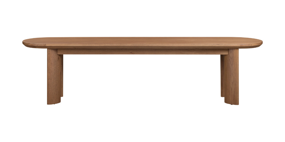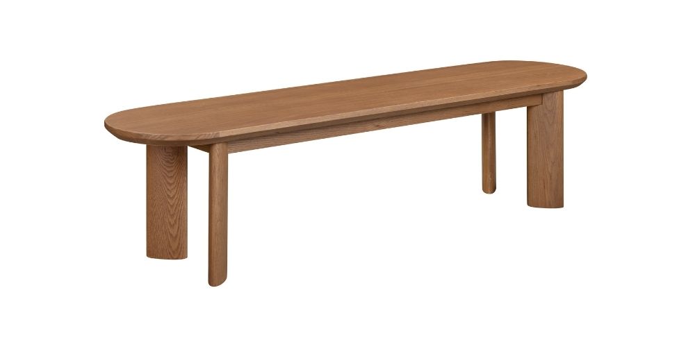The perfect sidekick to your Graze Oval Dining Table, the Graze Oval Bench mirrors the bevelled edge detailing, oval silhouette, and the same striking angled legs. Finished in a rich, warm caramel tone or natural oak, the Graze Oval Bench is perfect for sitting, lingering, and pretending the dishes will wash themselves.