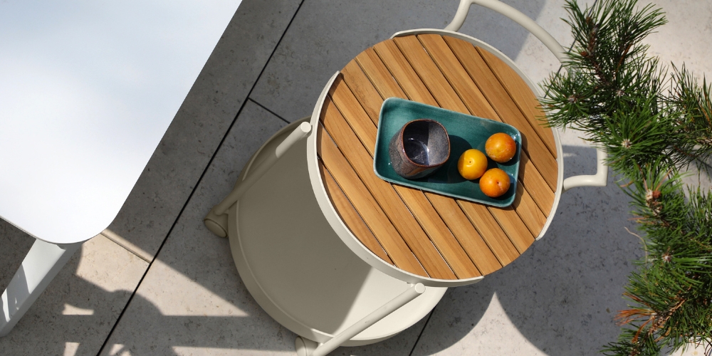 • Removable and transferable slatted teak tray.