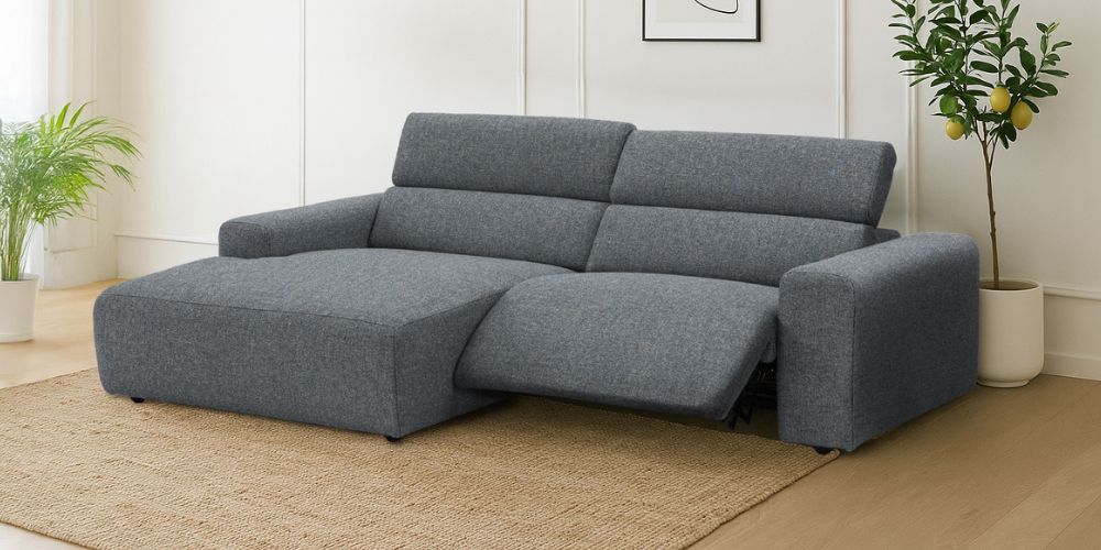 The Vella 3.5 Seater Power Reclining Chaise LHF in fabric boasts a refined aesthetic that’s effortlessly elevated by seamless motion functionality, creating a beautifully balanced sofa that’s as practical as it is poised. Sink into the generous proportions, stretch out on the chaise, and find your perfect lounging angle with discreet power recline and manually adjustable headrest functionality—perfect for everything from relaxed conversations to winding down with your favourite series.